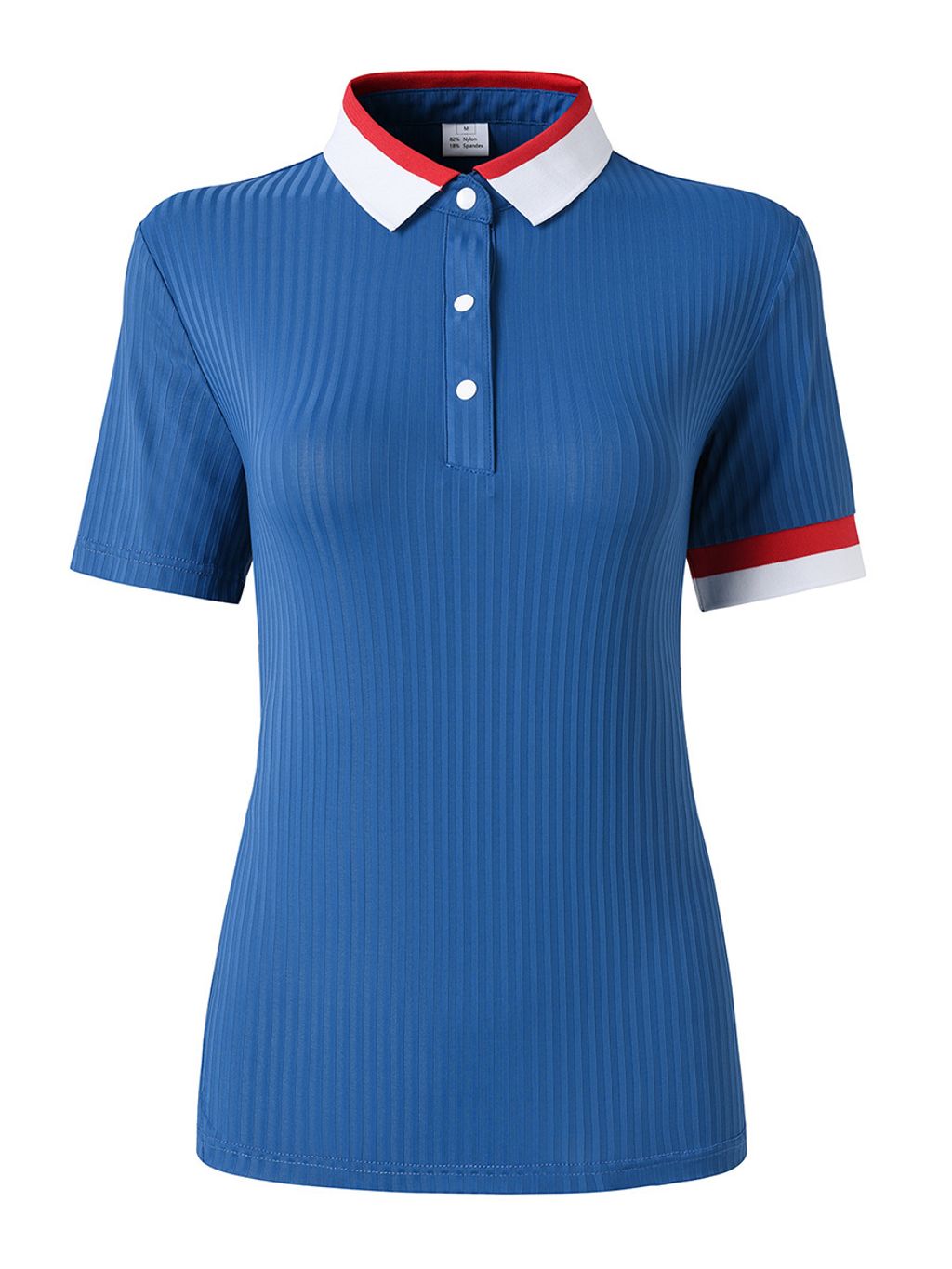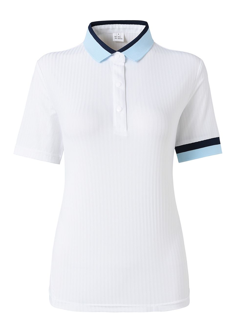 布面採用垂直坑條的短袖POLO衫,帶來修身的視覺效果;領口和袖口採用的色拼接設計,增添了設計感。